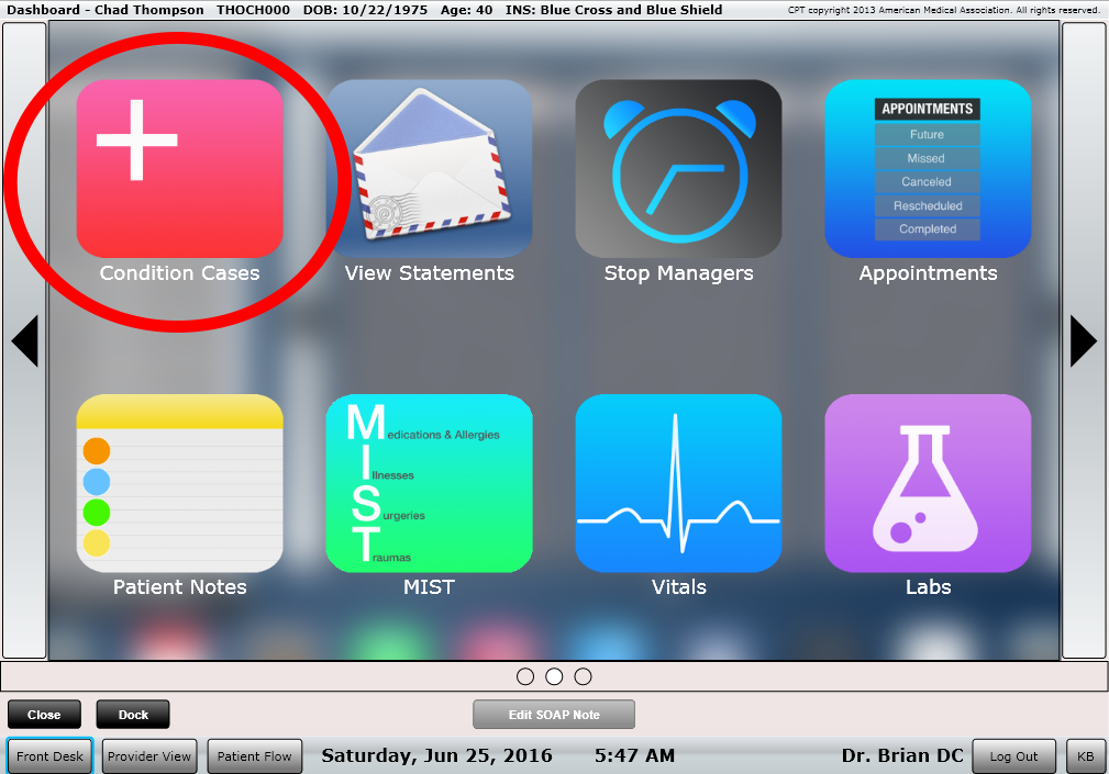 Condition cases define a start and end date that can be important when submitting SOAP notes to insurance companies.