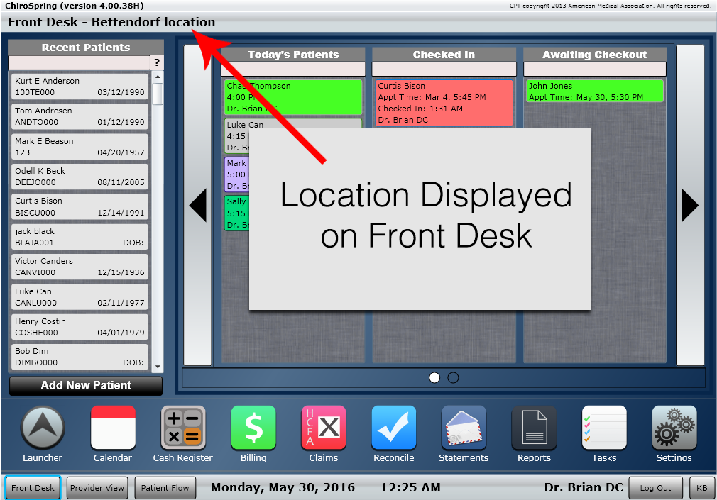 For some software systems, multi-location support is easier said than done. While they may claim to support multiple practices, doctors may need to install, run, and maintain additional remote desktop or Virtual Private Network software just to make it work. ChiroSpring doesn't make you work, ChiroSpring just works. Click a drop-down menu to select whichever location you'd prefer, and you're on your way. No extra software, no extra networking. Simple and smart, that's ChiroSpring.