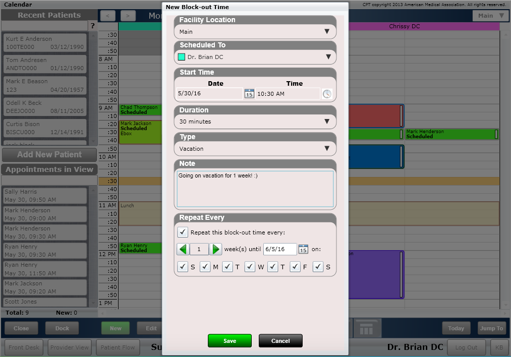 Can't find that new patient on the calendar? There's no need to bounce around with ChiroSpring. You can quickly add any new patient information directly from the calendar screen.