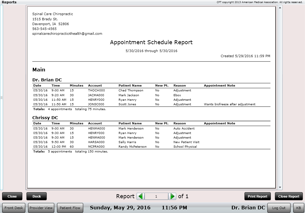 ChiroSpring makes scheduling a patient appointment fast and easy. View calendar appointments in a day, week or home view, and review appointments for all practitioners, or use the filter feature to just see appointments for any single provider.