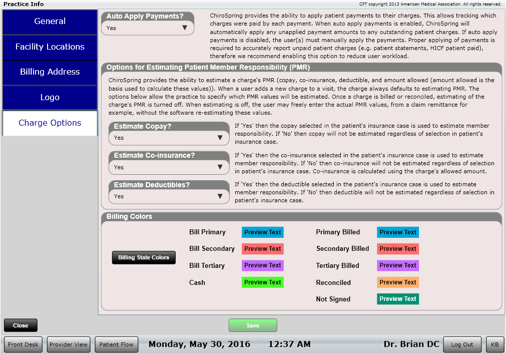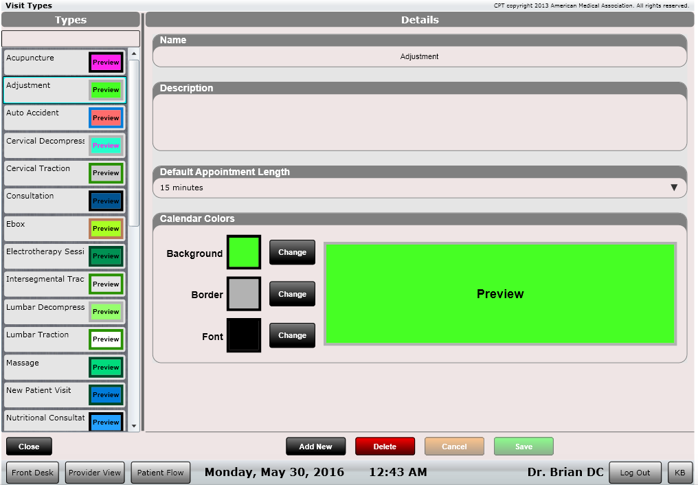 Assign user permissions, restrict access to portions of the software, establish hours, designate user locations, import provider signatures (which appear on signed SOAP notes), and customize calendar colors and time-slots. As always, ChiroSpring allows for unlimited staff users at no extra cost.